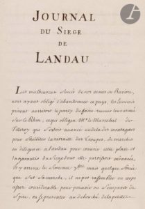 [MILITARIA]. [SIÈGE DE LANDAU]. [MAGONTHIER DE LAUBANIE (Yrieix de)]. Journal du siège de …