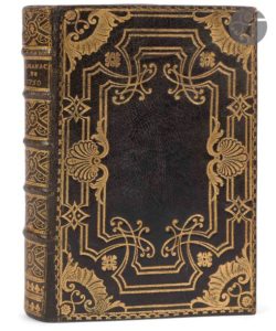 Paris : Veuve d’Houry, Le Breton petit-fils d’Houry, 1750. — In-8, 191 x 129 : 456 pp. Maroquin noir, plaque rocaille dorée en encadrement sur les plats, dos à nerfs orné, roulette dorée intérieure, doublures et gardes de papier à décor floral doré, tranches dorées (reliure de l’époque).