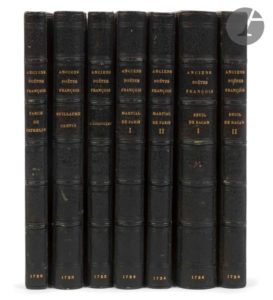 Collection estimée publiée par Antoine-Urbain Coustelier, imprimeur-libraire en titre du duc d’Orléans, proposant des textes anciens inconnus ou oubliés à l’époque. L’impression de chaque volume est remarquable.