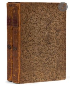 Paris : Buisson, An cinquième de la République [1796]. — 2 volumes in-8, 191 x 116 : (2 ff.), 286 pp. ; (2 ff.), 320 pp. Demi-basane havane à petits coins de parchemin blanc, dos lisse orné, tranches jaunes (reliure de l’époque).