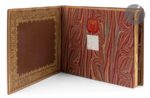 Francfort : Matthäus Merian, 1627. — Petit in-4 oblong, 144 x 190 : titre, 77 planches. Maroquin violet, triple filet doré en encadrement sur les plats, dos à nerfs orné, doublures de maroquin brun orné d’une large dentelle dorée en encadrement, doubles gardes, tranches dorées, étui (David).