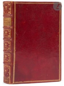 Londres [Paris : Briasson], 1751. — 3 parties en un volume in-8, 164 x 102 : xij, 244 pp. ; (2 ff.), 172 pp. ; 72 pp. Maroquin rouge, triple filet doré en encadrement sur les plats, dos à nerfs orné, roulette dorée intérieure, tranches dorées sur marbrures (reliure de l’époque).