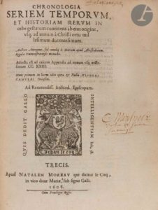 Édition princeps publiée par les soins de l›historien Nicolas Camusat (1575-1655), de l›importante et célèbre chronique universelle de Saint-Marien, couvrant la période allant de la création du monde à 1211.