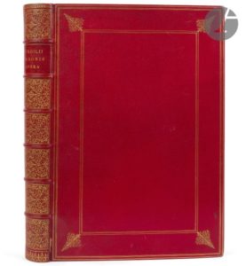 Paris : Pierre Didot, 1791. — In-folio, 371 x 250 : (2 ff.), iv, 513 pp., (1 f. blanc). Maroquin rouge, décor à la Du Seuil doré sur les plats, dos à nerfs orné, dentelle dorée intérieure, tranches dorées (Capé).