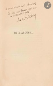 BLOY (Léon). Je m’accuse….. Paris : La maison d’art, 1900. — Grand in-16, 205 x 169 : 177 …