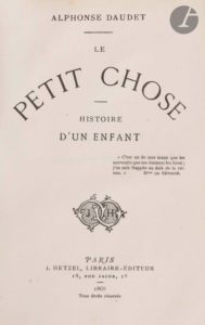 Édition originale de ce célèbre roman autobiographique d’Alphonse Daudet, dont il n’a pas été fait de tirage sur grand papier.