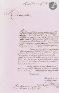 EXEMPLAIRE ENRICHI D’UNE BELLE LETTRE AUTOGRAPHE SIGNÉE DE L’AUTEUR, ADRESSÉE À DELPHINE NOURRY, une page in-8, datée de Rochefort, le 15 octobre 1833. Elle porte en grande partie sur l’ouvrage : « Madame votre sœur est assez bonne pour vouloir bien vous remettre quelques livraisons des Oiseaux-mouches. Une seule livraison reste à paraître pour completter cet ouvrage, et bientôt j’espère être mis à même de vous la faire parvenir. Il me restera alors à vous remercier de la bienveillance avec laquelle vous avez accueilli ce délassement d’études sérieuses, et une œuvre futile sans doute, mais à laquelle je tiens par égoïsme, car je lui dois de douces distractions. »