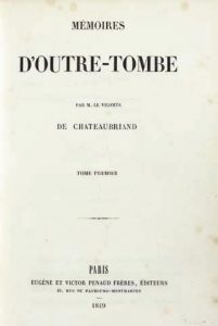 paginé 513-514 erronément relié après la p. 526 dans le t. Viii, quelques déchirures marginales dont certaines restaurées, quelques rousseurs (Yseux sr de Simier, dans le goût de l’époque). ÉDITION ORIGINALE, EXEMPLAIRE DE PREMIÈRE ÉMISSION comportant bien le premier cahier du premier volume (avertissement, liste des souscripteurs et lettre à Delloye) qui serait supprimé quand le solde de l’édition passerait au libraire Dion-Lambert. Écrits de 1809 à 1833 et maintes fois remaniés par la suite, les Mémoires d’outre-tombe avaient d’abord paru en feuilleton dans le journal La Presse du 21 octobre 1848 au 5 juillet 1850.