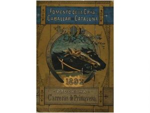 1892. (EQUITACION). CARRERAS DE CABALLOS EN EL HIPODROMO DE BARCELONA. Domingo 22, primer día, Mayo 1892. 8° menor. 8 hojas en las que se detallan los horarios, premios, distancias, pesos y orígen de los caballos participantes, con su nombre, el...