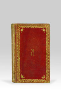 à long grain, dentelle droite formée de deux filets et de deux roulettes, chiffre O couronné au centre et couronne princière dans les angles, dos lisse richement orné d'un décor de croisillons, dentelle intérieure, tranches dorées (Reliure de l'époque).