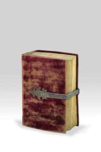 Reliure moderne (XIXe s.) de velours rouge pâle (tirant sur le rose), plats de carton recouverts de velours, dos lisse, fermoirs métalliques avec motifs gravés de fleurs et de feuillages, tranches dorées (velours usé). Petite déchirure et restauration du feuillet (fol. 4) avec petite perte au niveau de l’initiale historiée dans la partie supérieure gauche (fol. 4v). Quelques petits trous de vers et taches, sans gravité. Déchirure à un feuillet (f. 309), sans perte de texte. Un feuillet plus court (fol. 570).