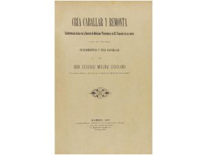 1899. (EQUITACION). MOLINA SERRANO, EUSEBIO: CRIA CABALLAR Y REMOTA. Confrencias dadas en la Sección de Medicina Veterinaria de El Fomento de las Artes, acerca del tema oficial: Cruzamientos y cría familiar. Madrid: Est. Tip. de los Hijos de R....