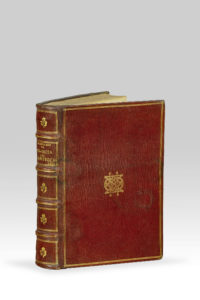 fleuron (fleur) répété, le titre, nom de l'auteur et date de l'édition frappés dans le second caisson, tranches mouchetées de rouge (Reliure de l'époque).