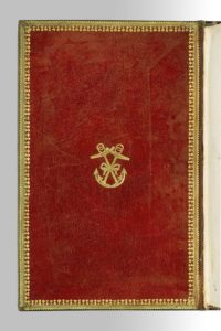 dos orné, les caissons chargés d'une fleur de lis et d'une petite pièce d'armes (ancre) répétée dans les angles, dentelle intérieure, doublure de maroquin rouge avec armoiries dorées au centre, tranches dorées (Reliure du début du XVIIIe siècle).