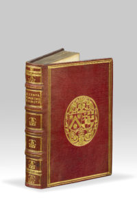 → TRÈS ÉLÉGANTE RELIURE AUX ARMES ET CHIFFRE DE JACQUES-AUGUSTE DE THOU (1553-1617) : le bloc armorial comprend les armoiries du bibliophile, couplées avec celles de sa seconde épouse, Gasparde de La Châtre, qu'il épousa en 1602.