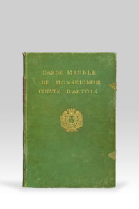 Il porte sur le premier plat cette inscription en capitales dorées : Garde meuble / de Monseigneur / Comte d'Artois.