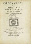 ÉDITION ORIGINALE DE CETTE FAMEUSE ORDONNANCE, L'UNE DES PLUS IMPORTANTES DE LA LÉGISLATION DE L'ANCIEN RÉGIME, APPELÉE COMMUNÉMENT ORDONNANCE DE COLBERT.