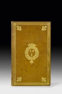 Ensemble 3 ouvrages en un volume in-8, maroquin fauve à long grain, bordure ornée de huit filets dorés se croisant aux angles, fleur de lis aux angles, armoiries au centre, dos orné avec fleur de lis répétée, roulette intérieure, tranches dorées (Simier).
