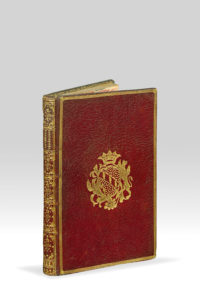 triple filet doré, armoiries au centre, dos lisse orné, roulette intérieure, tranches dorées (Reliure de l'époque).