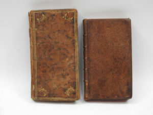 Comedies Françoise et Italienne et des Foires. A Paris, Chés Duchesne, Libraire, 1753. Ensemble 2 volumes in-18, veau (pour 1751) et veau, double filet doré encadrant les plats, fleuron aux angles, dos lisse orné, tranches dorées (pour 1753) [reliures de l’époque]. 40/50 Un frontispice allégorique et deux titres ornés. ENSEMBLE DEUX VOLUMES (reliures dépareillées).