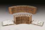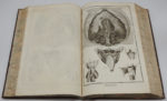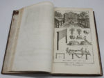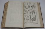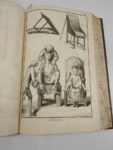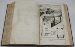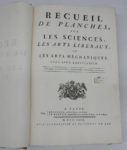 orné (reliure de l’époque). 15 000/20 000 • Texte : A Paris, Chez Briasson, David, Le Breton & Durand, 1751-1757 (tomes I à VII), et A Neufchastel, Chez Samuel Faulche, 1765 (tomes VIII à XVII) [17 vol.]. • Planches : A Paris, Chez Briasson, David, Le Breton & Durand, 1762-1772 (11 vol.). • Supplément : A Amsterdam, Chez M. M. Rey, 1776-1777 (4 vol. de texte). A Paris, Chez Panckoucke, Stoupe et Brunet et A Amsterdam, Chez M. M. Rey, 1777. Ensemble 5 volumes. • Tables : Paris, Panckoucke, et Amsterdam, Marc-Michel Rey, 1780 (2 vol.). Un frontispice & 2 795 planches gravées, ce qui correspond à 3 132 planches d’après la façon de compter des éditeurs ; tableaux repliés, dont le « Tableau du système figuré des connoissances humaines » (tome I). ÉDITION ORIGINALE de cet ouvrage collectif dirigé par DIDEROT et d’ALEMBERT, réunissant des textes de GRIMM, HOLBACH, ROUSSEAU, TURGOT… et donnant de très nombreuses informations sur les domaines techniques, scientifiques et industriels, mêlées à la présentation de principes philosophiques qui, en 1752 et en 1759, firent condamner à deux reprises cette œuvre qui ne put être achevée que grâce à la protection de Guillaume de LAMOIGNON de MALESHERBES et de Marc Pierre de VOYER d’ARGENSON, secrétaire d’État à la Guerre de 1743 à 1757, à qui l’ouvrage est dédié. L’impression du texte de cette gigantesque entreprise éditoriale, réalisée d’abord à Paris, entre 1751 à 1757, par Briasson, David, Le Breton et Durand, se poursuivit clandestinement sous la fausse adresse de Faulche à Neuchâtel, en 1765. Les onze volumes de planches furent publiés à Paris par les Libraires Associés entre 1762 et 1772. De la bibliothèque A. Daguin, avec timbre humide sur les titres. Quelques petits accidents aux reliures ; titre du t. I en déficit ; quelques pages de texte des volumes de planches rousses ; mouillures dans les t. I, II & III des planches. Pp. 5 à 8 de l’explication des planches du t. 5 du Supplément en déficit. Inversion dans la tomaison des t. II & III des planches, une planche et un cahier mal reliés en fin du t. VIII (« Potier d’etain bimblotier » VI) ; une planche déreliée dans le t. XI (« Rubanier » III). Quelques coiffes, coins et mors accidentés, quelques épidermures. Mouillure dans une dizaine de volumes.