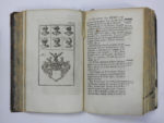 « Généalogie de la maison de France » (p. 515), un « Dictionnaire universel des termes du blason » (p. 556) et une table des noms de famille cités dans l’ouvrage (p. 620). Un frontispice aux armes de France et 50 planches gravées. Quelques accidents à la reliure. Saffroy, I, 2205.