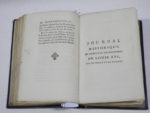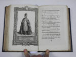 jusqu’à Louis XVI ; et suivi d’un Journal historique de ce qui s’est passé à cette auguste cérémonie. A Paris, Chez Vente, Libraire des Menus Plaisirs du Roi, 1775. In-8°, bradel, cartonnage bleu (reliure de l’époque). 800/1 000 Un titre orné, un titre frontispice orné du portrait de Louis XVI (portant Le Sacre de Louis XVI. Roi de France et de Navarre. Dans l’église de Rheim[s] le 11 juin 1775. Paris, Chez Vente, Libraire, et Chez Patas, Graveur, 1775), treize bandeaux, neuf doubles planches (sur dix), 39 figures de costumes gravées par PATAS et un grand plan replié de la ville de Reims. Double planche pour le tapis armorié et plan replié de la ville de Reims en déficit. Présence du feuillet cartonné 29/30 du « Journal historique du sacre […] » Cohen, 785-786.