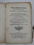 [PARIS]. JAILLOT (M.). Recherches critique, historiques et topographiques sur la ville de Paris, depuis ses commencements connus, jusqu’à présent. A Paris, Chez Aug. Mart. Lottin aîné, Imprimeur-Libraire, 1772-1775. 20 volumes et une Table,...