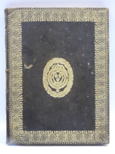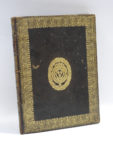 [RELIURE en MAROQUIN]. Réunion de feuillets blancs en un volume in-4°, maroquin olive, large roulette dentelée dorée encadrant les plats, armoiries royales au centre, dos à nerfs orné, pièce de titre en maroquin rouge titrée « Principe »...