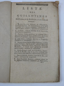 [RÉVOLUTION FRANÇAISE]. • Liste des guillotinés sur la place de la Révolution, et au ci-devant Carouzel, •• Liste générale et très exacte des noms, âges, qualités et demeures de tous les Conspirateurs qui ont été condamnés à mort...