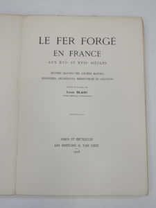 96 planches d’illustrations. JOINT : Le Fer forgé. Documents artistiques de ferronnerie ancienne du Moyen-Age à la fin du XVIIIème siècle. Paris, s. d. In-4°, percaline illustrée de l’éditeur. Illustrations. ENSEMBLE DEUX VOLUMES.