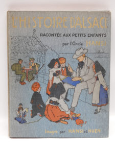 HANSI (Oncle). L’Histoire d’Alsace racontée aux petits enfants d’Alsace et de France. Paris, H. Floury, Éditeur, 1912. Grand in-4°, cartonnage gris-bleu de l’éditeur, titre doré et large décor polychrome personnalisé ornant le premier...