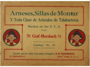 1920 ca. (EQUITACION-CATALOGO). ARNESES, SILLAS DE MONTAR Y TODA CLASE DE ARTICULOS DE TALABARTERIA HECHOS EN LOS EUA POR THE GRAF-MORSBACH co. CATALOGO num. 10. NY, sa. 8° mayor. 70 p. Con ilustaciones fotograficas. Rùstica ilustrada.