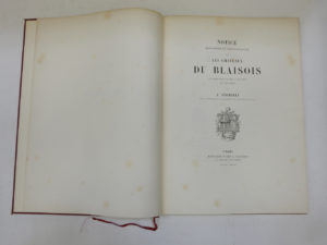 STORELLI (André). Notice historique et chronologique sur les châteaux du Blaisois. Paris, Librairie d’Art L. Baschet, 1884. In-folio, bradel, toile bordeaux (reliure fin XXe s.). 50/60 Un titre de relais pour Chaumont-sur-Loire, daté de 1882....