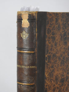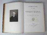 [VIOLLET-le-DUC (Eugène)]. Compositions et dessins de Viollet-le-Duc publiés sous le patronage du Comité de l’œuvre du maître. Paris, Librairie Centrale d’Architecture, 1884. Grand in-folio, demi-chagrin brun, dos à nerfs (reliure de...