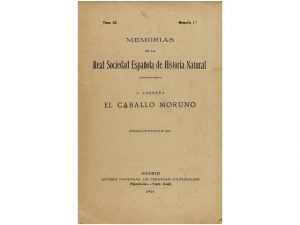 1921. (EQUITACION). CABRERA, A.: EL CABALLO MURUNO. Madrid: Imp. de Alrededor del Mundo / Memorias de la Real Sociedad Espanola de Historia Natural, 1921. 4°. 120 p. 41 figuras en el texto. Rústica.