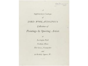 1930 ca. (HIPICA). WOOLAVINGTON 'S, Lord: A SUPPLEMENTARY CATALOGUE OF ... COLLECTION OF PAINTINGS BY ARTIST AT LAVINGTON PARK, NORTHAW; THE GROVE, NEWMARKET AND 25 NERKELEY SQUARE, W. London: Printed by Messrs; Hudson and Kearns, Ltd., sa. Folio....