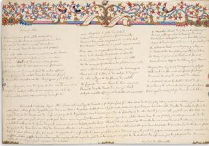 MANUSCRIT autographe signé « Théodore de Banville », Sonnets Antiques ; 1 page oblong in-fol. (25 x 36 cm) avec bandeau décoratif en chromolithographie (la décoration semble avoir été rognée sur les côtés et dans le bas).