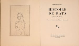 Histoire de rats (Journal de Dianus). Avec trois eaux-fortes d'Alberto GIACOMETTI (Paris, Les Éditions de Minuit, 1947) ; in-8 broché.