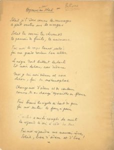 * Pauvre Jean (1 p. in-4), mis au net à l'encre noire sur un beau feuillet de papier vélin ; publié dans Poésies 1917-1920. « On réussit le tour / Grâce au noeud de cravate »