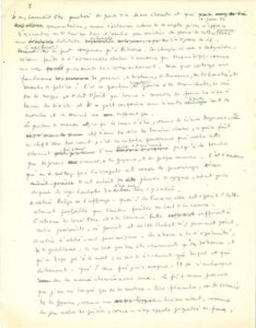 Brouillon pour la préface à Manon Lescaut de l'abbé Prévost. [Cette préface a été écrite pour une réédition du roman chez Stock en 1947 ; elle a paru dans la Revue de Paris en octobre 19417. Les quatre derniers paragraphes manquent dans ce manuscrit.] « Il ne saurait être question de parler d'un livre illustre et qui se passe de commentaires, mais d'éclairer certains de ses angles qu'on s'efforce d'arrondir ou de laisser dans l'ombre [] L'abbé Prévost ne se peut comparer qu'à Pétrone. Son atmosphère est celle du Satyricon, réserve faite de l'admirable chaleur d'amour que Manon dégage comme une rose grande ouverte dans un corsage entrouvert. Mais quel cortège aux flambeaux de joueurs, de tricheurs, de buveurs, de débauchés, de descentes de police ! C'est ce parfum crapuleux de poudre à la maréchale, de vin sur la nappe et de lit défait qui donne à Manon la force de vivre à travers les siècles et de ne se point confondre avec d'autres figures dont les mouches et le sourire ne me suffisent pas. La grandeur de Manon, ce qui la sauve d'être, comme Les Liaisons dangereuses, le chef d'oeuvre des livres de deuxième classe, ce qui en fait un chef d'oeuvre tout court, c'est la rafale parisienne qui roule cette étonnante histoire d'un parloir de séminaire jusqu'à la tombe que Des Grieux creuse, à la Guyane, de ses propres mains. C'est l'amour qui ne se mélange pas à la crapule et couvre les personnages de cet enduit des plumes de cygne, enduit grâce auquel le cygne barbote dans l'eau sale sans s'y salir » Etc.
