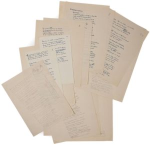 MANUSCRIT autographe, Le Chiffre sept, 1952 ; 18 pages in-4 ou in-8, et 30 pages oblong in-fol. d'un cahier de Croquis Dessin à reliure spirale.