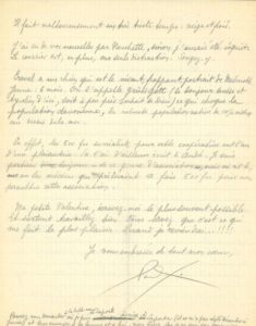 L.A.S. « Paul », [Davos] mardi [8 janvier 1935], à Valentine HUGO ; 2 pages in-4 au crayon, enveloppe.
