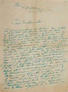 À une amie : il est bien malade, et se retrouve « dégustateur morose d'un tas de drogues fallacieuses et débilitantes, qui semblent, comme dit Bloy, "vouloir ma peau". [] toute ma maisonnée n'est d'ailleurs, en ce moment, qu'une sombre maladerie », et il n'arrive pas, dans ces conditions, à travailler 15 janvier 1919 : « Dans l'immense et délectable solitude nocturne de mon atelier, combien m'est-il profondément joyeux de penser à vous » Vernègues 4 décembre 1919. Lettre de recommandation à une dame en faveur de sa fille Marie-Thérèse, en voyage à Rome
