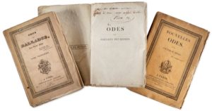 Odes et poésies diverses. - Nouvelles Odes. - Odes et Ballades (Paris, Pélicier, 1822 et Ladvocat, 1824-1826) ; 3 vol. in-12 (15,6 x 10,4 cm), brochés, sous chemises et étuis de papier caillouté.