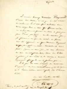 Hugo avait demandé à Raynouard des billets revêtus de sa signature qui « pussent me servir de passeport pour l'entrée privilégiée. Ne les recevant pas, je présume que ces entrées de faveur ont été supprimées et que Monsieur Raynouard n'a pas pris garde à cette demande de ma part. Comme ni mon père, ni ma femme ni moi ne comptons nous servir des billets ci-joints, je me hâte de les renvoyer »...