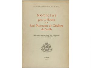 1959. (EQUITACION). NOTICIAS PARA LA HISTORIA DE LA REAL MAESTRANZA DE CABALLERIA DE SEVILLA. Sevilla: Tall. La Gavidia, 1959. 4° menor. 383 p., 2 h. Rústica.