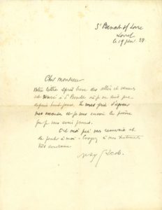 L.A.S. « Max Jacob », Saint Benoit sur Loire 19 janvier 1928, [à M. Dupeyron] ; 1 page in-4.