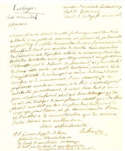 « N'ayant pû encore obtenir de votre justice que vous rendiés la liberté à un patriote méconnu et calomnié, je demande aujourd'huy à votre humanité de me faire au moins transférer dans une maison de santé. Trois semaines de séjour ici ont déjà fait altéré la mienne []. Ma poitrine s'échauffe par le défaut de sommeil, et j'ai craché le sang cette nuit. Un autre tourment pour moi c'est l'impossibilité de m'occuper ou même de lire dans la cohue et le mouvement d'une chambrée de 12 personnes. Accoutumé comme je le suis à écrire pour la liberté journellement, il m'est bien dur de ne pouvoir plus sa servir, et il est bien étrange qu'on m'ait ôté l'usage de ma plume plutôt que de s'en servir. [] Je manque de tout, et surtout de mes chers livres, la nourriture et le soutien de ma vie. »