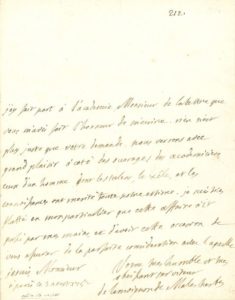 Paris 3 août 1752. Il a fait part à l'Académie de la lettre de son correspondant : « Rien n'est plus juste que votre demande. Nous verrons avec grand plaisir à coté des ouvrages des academiciens, ceux d'un homme dont les talens, le zêle, et les connoissances ont merité toute notre estime. Je suis tres flatté en mon particulier que cette affaire ait passé par mes mains »